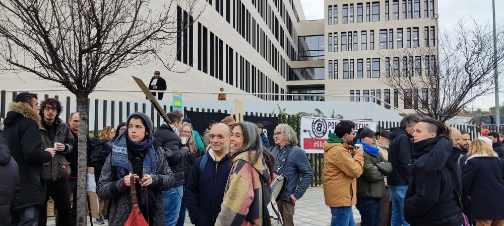 Más de un centenar de personas han acudido esta mañana a las puertas del nuevo edificio de los juzgados de Guadalajara, convocados por la Plataforma Antirrepresiva de Guadalajara, en apoyo a las 8 de Caixaibank, cuyo juicio se ha celebrado hoy después de más de 7 años. Los ocho activistas de la Plataforma de Afectados por la Hipoteca (PAH) fueron detenidos el 5 de diciembre de 2017 por una protesta en el interior de la sucursal de Caixabank en Cabanillas del Campo, para evitar el desahucio de una familia en situación de vulnerabilidad. El juicio se celebraba en ausencia de los ocho imputados y ha quedado visto para sentencia.