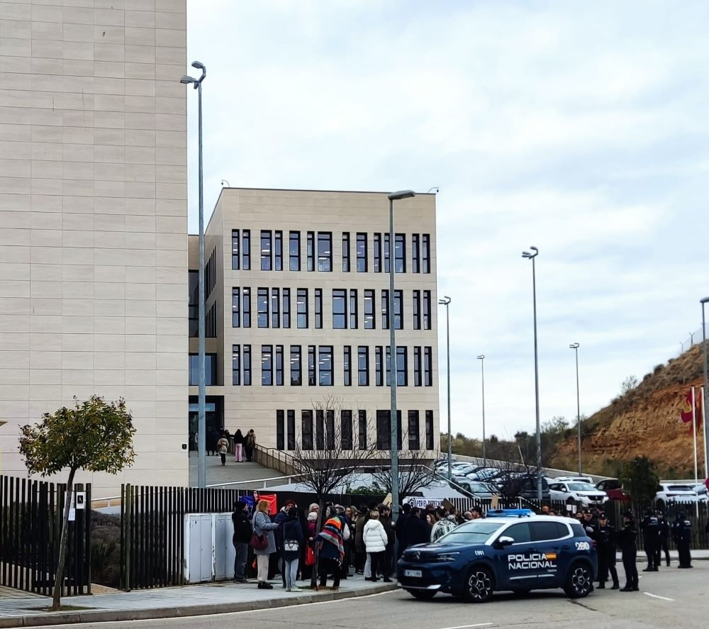 Desde las puertas, una de las activistas informa de que están teniendo problemas para acceder a la audiencia, que finalmente sería pública y abierta, aunque parece ser que con plazas limitadas, y estaba previsto que se desarrollara bajo la vigilancia de Amnistía Internacional, pese a que en la anterior citación, que fue suspendida, la jueza pidió que la audiencia fuera a puerta cerrada, impidiendo la presencia de los observadores de esta organización, que habían solicitado asistir.