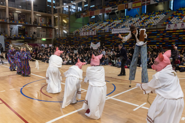 En una decisión sin precedentes, la gran sardina ha sido indultada de la quema, junto con el resto de las sardinas de los colegios, ya que no ha sido posible realizar la tradicional hoguera en el espacio cerrado del Palacio Multiusos. Este gesto simbólico ha sido recibido con aplausos y alegría por parte de los asistentes, quienes han disfrutado de una jornada llena de música, color y diversión.