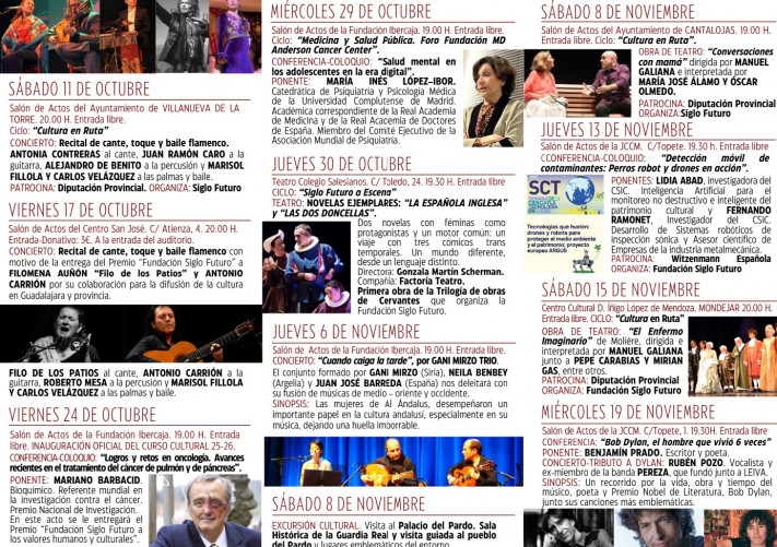 La Fundación Siglo Futuro presenta una intensa programación cultural para los meses de octubre y noviembre, con actividades que combinan música, teatro, conferencias científicas y homenajes a grandes figuras de la cultura y la investigación.