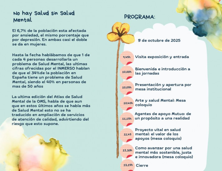 La jornada "La Salud Mental, un derecho irrenunciable" tendrá lugar este jueves, 9 de octubre, en el salón de actos de la Delegación de la Junta de Guadalajara, a partir de las 9.45 horas