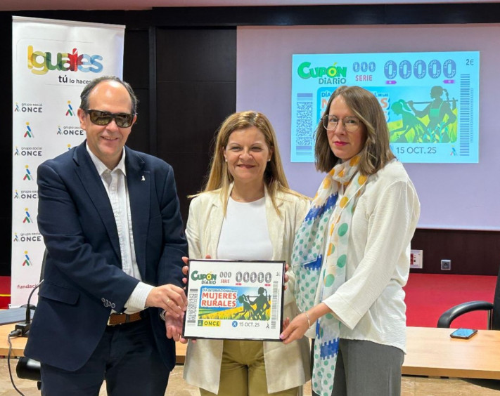 La directora del Instituto de la Mujer de Castilla-La Mancha, Lourdes Luna, ha reconocido la labor de la ONCE en la presentación del cupón dedicado al Día Internacional de las Mujeres Rurales. Acompañada por el presidente del Consejo Territorial de la ONCE en Castilla-La Mancha, José Martínez, Luna ha puesto en valor el trabajo de las mujeres en el medio rural y su contribución al desarrollo social y económico de la región.