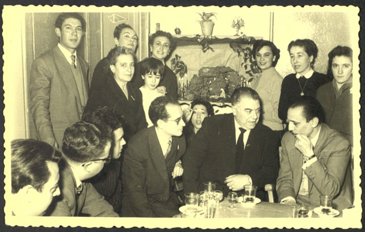 Se trata de una fotografía histórica que reúne a Antonio Buero Vallejo con la Agrupación Artística Antorcha en la Navidad de 1957