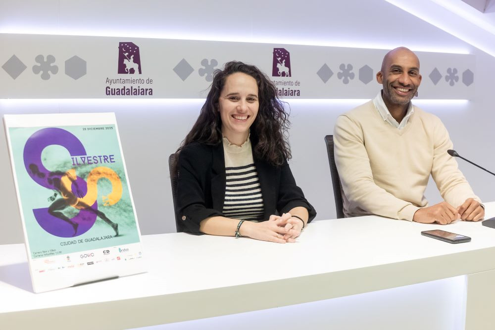 El concejal de Deportes del Ayuntamiento de Guadalajara, Armengol Engonga, junto a la organizadora de la prueba, María Amarilla, han presentado esta mañana la San Silvestre Ciudad de Guadalajara, una cita deportiva que se ha consolidado como una de las más esperadas por los amantes del running en la ciudad.