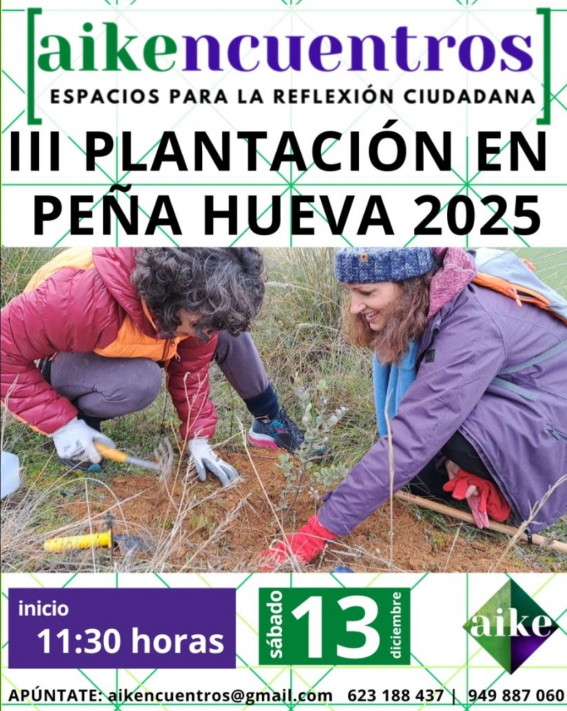 El Aikencuentro de este mes de diciembre será el sábado día 13 y dará comienzo a las 11:30 horas, al inicio de la subida a Peña Hueva. El objetivo es plantar quejigos donados por el Centro Agrario El Serranillo y revisar los ejemplares plantados en los dos años anteriores. En estas convocatorias suman más de 250 árboles plantados, que se han ido regando en las fechas más calurosas y secas del periodo estival.