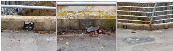 Asimismo, la pasarela que conecta esta plaza con el barranco del Alamín muestra un avanzado estado de dejadez y abandono. Claro ejemplo de ello son los focos que deberían iluminarla de noche, pero la gran mayoría están rotos o no funcionan.