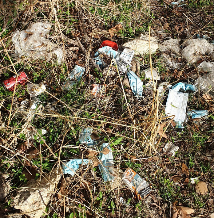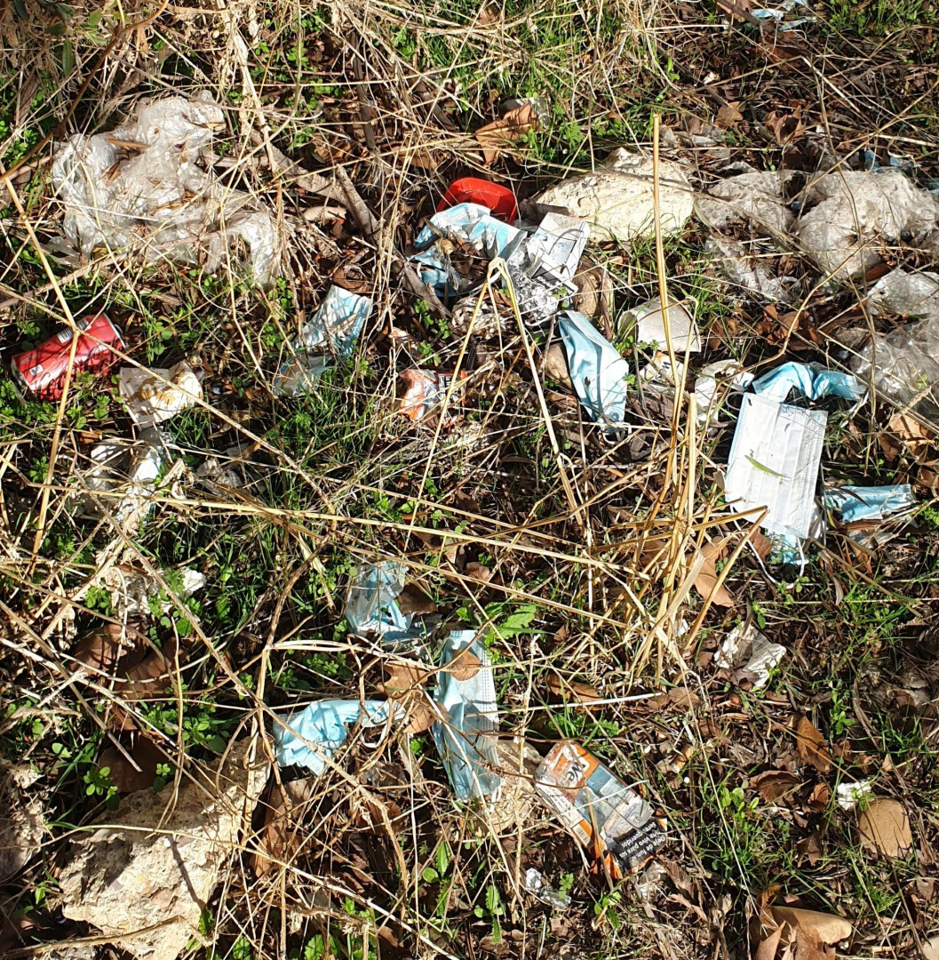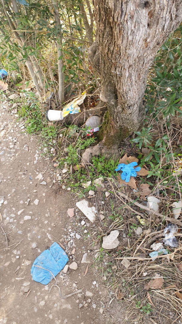 Últimamente tengo que ir todos los días al Hospital. Hay días que aparco en el terreno que hay por la parte nueva y esto es lo que me encuentro. Como muestran las fotos es un basurero: mascarillas, guantes, botes de cerveza, Coca-Cola, etc.