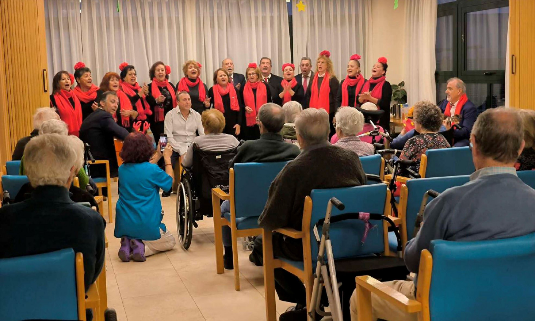 Dentro del programa de actividades culturales de esta Navidad, Cabanillas contó ayer con la visita de un grupo rociero, 'Marisma', para ofrecer un espectáculo de villancicos andaluces y flamencos. La formación tuvo una doble actuación. Primero acudió a la Residencia de Mayores 'El Parque', a cuyos residentes el Ayuntamiento quiso acercarles un año más un trocito de estos festejos. Los ancianos y ancianas de la residencia disfrutaron muchísimo el concierto, así como algunos familiares que se dieron cita para la ocasión, y llenaron la sala de eventos de la instalación.