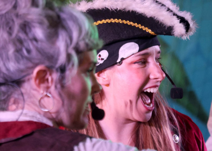 Tras atracar en Cabanillas, el barco pirata de estos corsarios necesita reclutar más tripulación. Y la búsqueda se realizó entre la chavalada congregada para la ocasión. Tras mancharles debidamente, para que estuvieran todo lo sucios que requiere ser pirata, comenzaron multitud de canciones, juegos infantiles y dinámicas de grupo en un espectáculo tremendamente participativo. La obra es un clásico en el repertorio de la compañía, en una propuesta donde el público infantil se convierte en parte esencial del espectáculo. Los niños surcan los siete mares junto a unos alocados bucaneros, escapan de cocodrilos hambrientos, conocen animales exóticos, bailan la divertida «polka del pirata» y demuestran su puntería con cañones imaginarios. Todo ello envuelto en humor, animación, juegos y mucha interacción, lo que hace que la experiencia sea dinámica y llena de risas. Los actores, caracterizados con coloridos trajes piratas, transmiten energía contagiosa y saben conectar perfectamente con el público infantil, haciendo que nadie se quede como mero espectador.