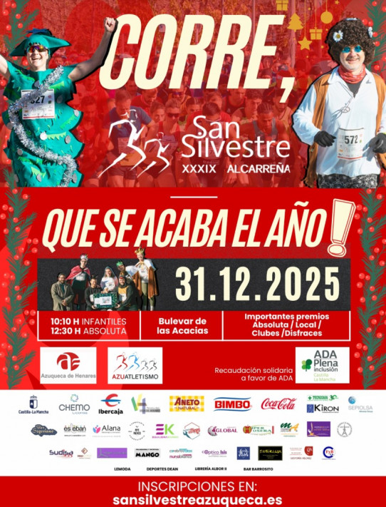 La 39 edición de la San Silvestre Alcarreña, que se correrá este miércoles, 31 de diciembre, suma 1.067 personas inscritas, 725 en la categoría absoluta y el resto en las categorías infantiles. El alcalde de Azuqueca de Henares, Miguel Óscar Aparicio, se ha mostrado “muy satisfecho por la acogida de la que es la prueba más emblemática de la localidad, junto con la Media Maratón, que también organiza la asociación Azuatletismo con la colaboración del Ayuntamiento”. “La San Silvestre Alcarreña es la última prueba deportiva de cada año en Azuqueca, la más antigua de la provincia y la segunda más longeva en la región; pero también es una actividad familiar y social en la que participan corredores y corredoras de todas las edades, y es una propuesta solidaria, ya que parte de la recaudación que se ha obtenido con las inscripciones será para la asociación local ADA”, añade el regidor.