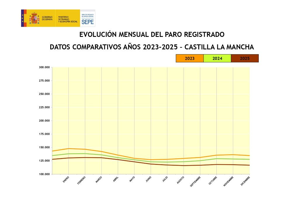 En el conjunto de Castilla-La Mancha, el paro bajó un 0,84%, con 984 desempleados menos y un cómputo general de 116.808 desempleados. En comparación con diciembre de 2025, el paro ha disminuido un 8,58%, lo que supone10.958 personas menos sin empleo.