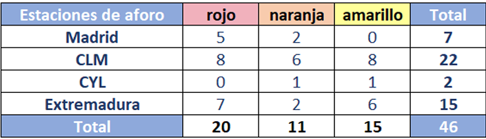 El informe señala que el número de estaciones en nivel rojo se ha reducido de 23 a 20 respecto a la anterior comunicación oficial, lo que refleja una ligera mejora en algunos tramos. Sin embargo, la situación sigue siendo delicada debido a las precipitaciones acumuladas, el nivel de los embalses y las previsiones meteorológicas para los próximos días.