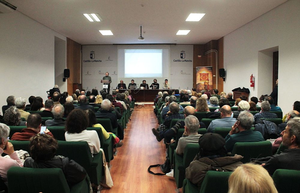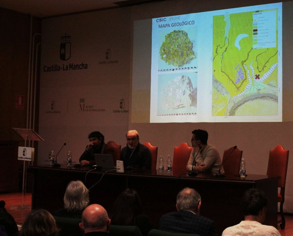 Miembros del equipo investigador del yacimiento arqueológico de Caraca, los directores de las excavaciones, Javier Fernández Ortea y Emilio Gamo (Museo Arqueológico Nacional), los arqueólogos Santiago David Domínguez Solera y Saúl Martín; las restauradoras del la Facultad de Bellas Artes de la Universidad Complutense de Madrid, Fátima Marcos y Virginia Lozano; el geólogo del Instituto Geológico y Minero de España (IGME-CESIC), Miguel Ángel Rodríguez Pascua; y el teniente de alcalde y edil de Cultura de Driebes, José Luis Aguado fueron los responsables de trasladar al numeroso público asistenta este emocionante descubrimiento con un enfoque multidisciplinar.
