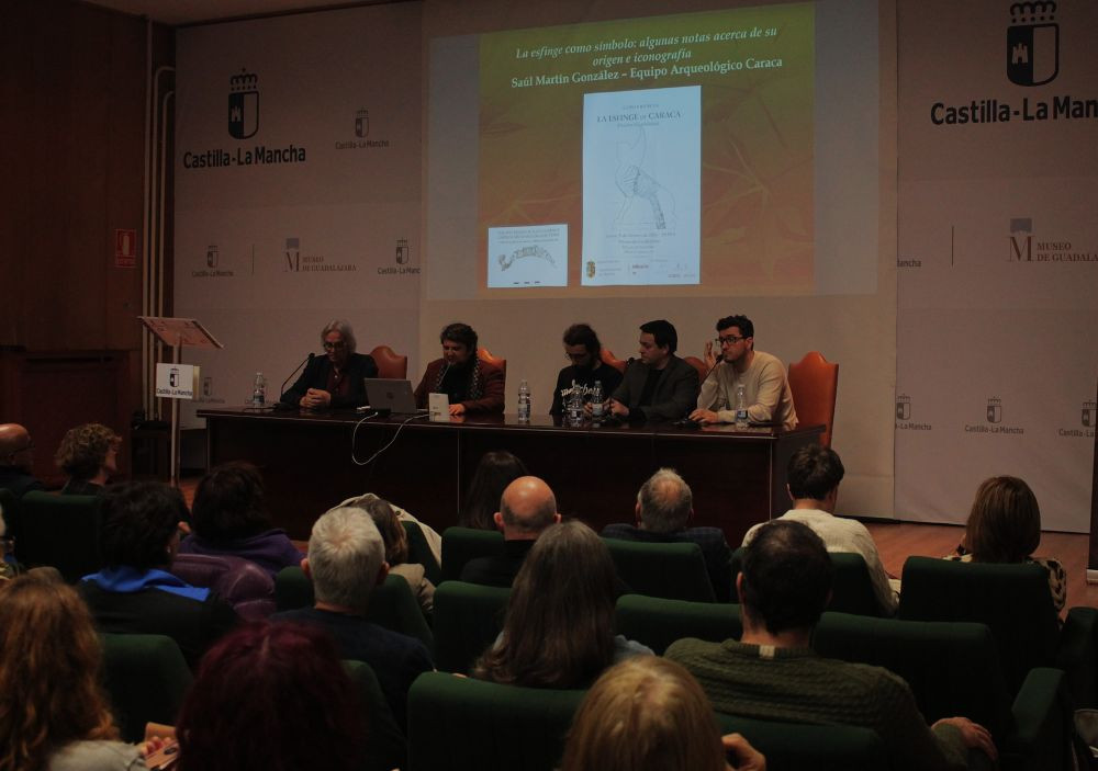 El hallazgo de una esfinge en el yacimiento de Caraca (Driebes) se presentó, en la tarde de ayer, a la sociedad guadalajareña, en un salón de actos del Museo Provincial de Guadalajara lleno hasta la bandera, como muestra del interés que las excavaciones arqueológicas de esta ciudad romana de los siglos II y I antes de Cristo, ha despertado entre la ciudadanía.