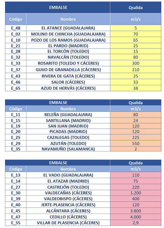 En el conjunto de la demarcación del Tajo hay 53 estaciones de aforo en aviso, 24 de ellas en nivel rojo. Además, 27 presas están desembalsando significativamente, nueve en nivel rojo