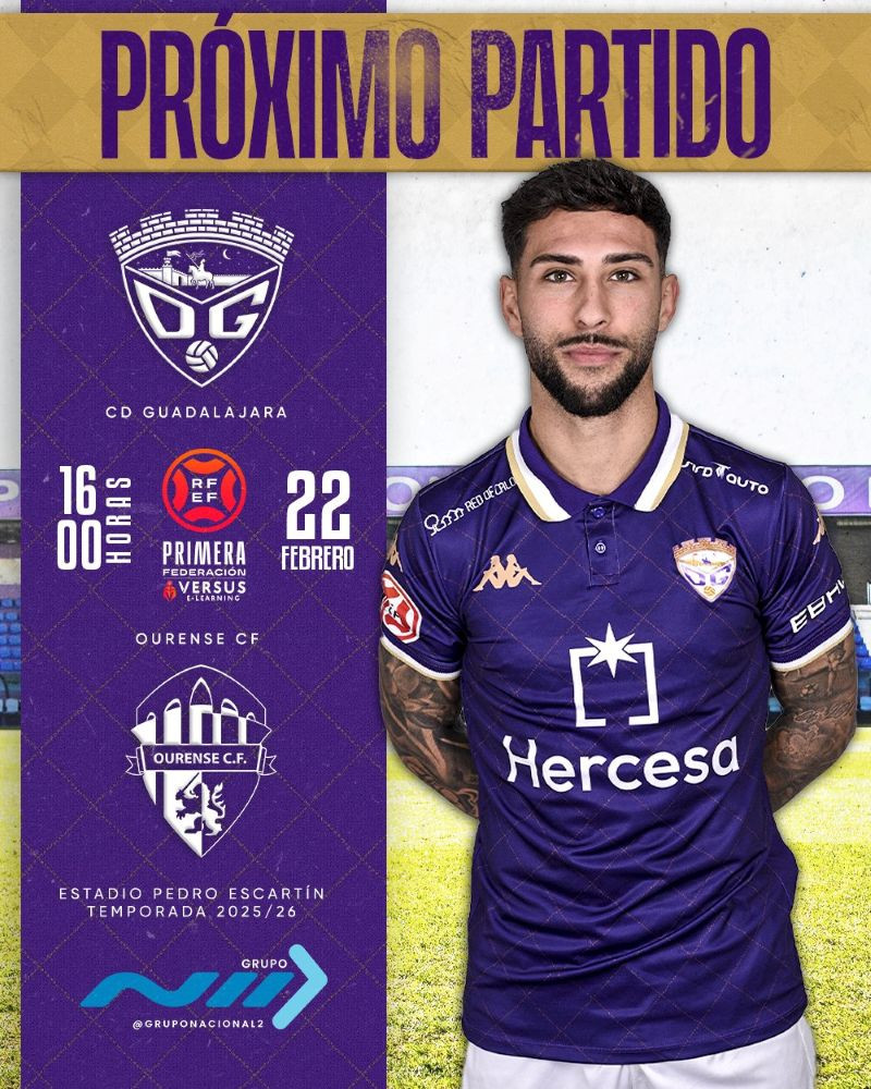 Si algo tiene el tramo decisivo de la temporada es que cada jornada empieza a pesar más que la anterior. Y lo que se vivirá este domingo 22 de febrero en el Pedro Escartín no será un partido más. El Club Deportivo Guadalajara se mide al Ourense Club de Fútbol en un duelo directo por la permanencia que puede marcar un antes y un después en el camino de los morados.
