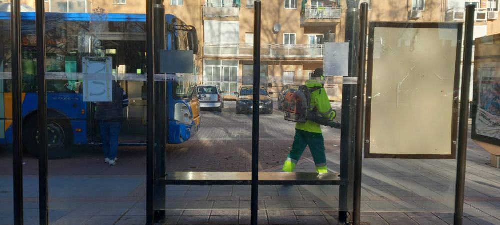 Les rogaría por favor que se esperen a que no coincida con el horario de los autobuses urbanos, ya que los que estamos esperando nos vemos obligados a separarnos no pocos metros porque si no acabamos llenos de la suciedad que mueve a toda velocidad la sopladora, por no hablar de que nos tragamos todas las partículas que quedan en suspensión.