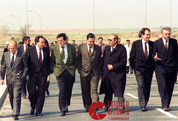 La fotografía en apariencia no tiene mayor interés, corresponde a la inauguración en 1990 del polígono del Henares en Guadalajara. En ella se ve a un grupo de hombres, el quien es quién de la política local y regional de la época. Desde la perspectiva de género es la manifestación cristalina e innegable de la invisibilidad de las mujeres en política en aquellos años. Comparada con cualquier fotografía actual de un acto público, que no se concibe sin presencia femenina, también lo es de los avances logrados en las últimas décadas en materia de igualdad.