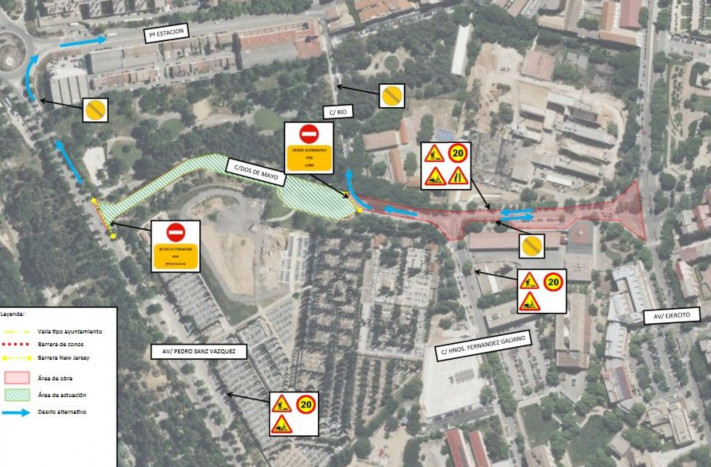 La parada de taxis se trasladará temporalmente a la Avenida del Ejército, y se coordinará con el Cementerio Municipal en caso de servicios funerarios para garantizar el acceso.