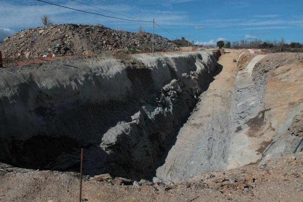 Las obras marchan a buen ritmo. Tal y como se puede ver sobre el terreno, hasta el momento, se ha ejecutado la rampa de acceso, abriendo una gran brecha en el suelo. La excavación se ha realizado por perforación y voladura controlada, aplicando técnicas de sostenimiento con bulones de acero y hormigón proyectado en los tramos críticos, siguiendo métodos mineros profesionales.