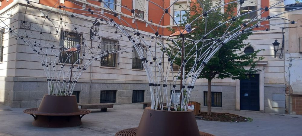 El Ayuntamiento de Guadalajara ha comenzado a instalar nuevos elementos de mobiliario urbano un tanto psicodélicos. Se trata de las llamadas 'corolas bioclimáticas' que, una vez pobladas de plantas, ofrecerán sombra a los viandantes. El presupuesto asciende a 190.505 euros y está cofinanciado con cargo a los Fondos de la Unión Europea Next Generation, en el marco del Plan de Recuperación, Transformación y Resiliencia.