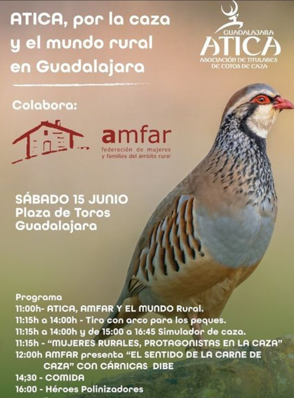 La Asociación de Titulares de Cotos de Caza de Guadalajara- ATICA – ha organizado una Jornada “Por La Caza y el Mundo Rural en Guadalajara”, que tendrá lugar este sábado día 15 de Junio en la plaza de toros de Guadalajara.
